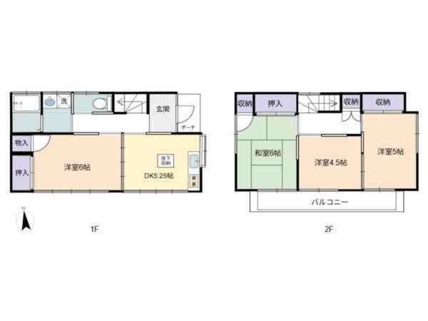 1F 洋 6.0帖 、1F 洋 5.2帖 、2F 洋 5.0帖 、2F 洋 4.5帖 、2F 和 6.0帖